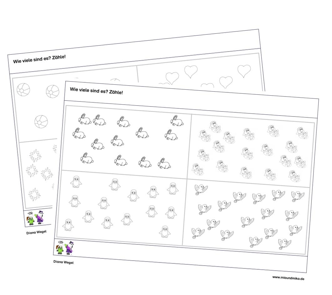 Für diesen Meilenstein habe ich dir Mengen zum Abzählen mitgebracht. Du findest hier 4 A4 Seiten.